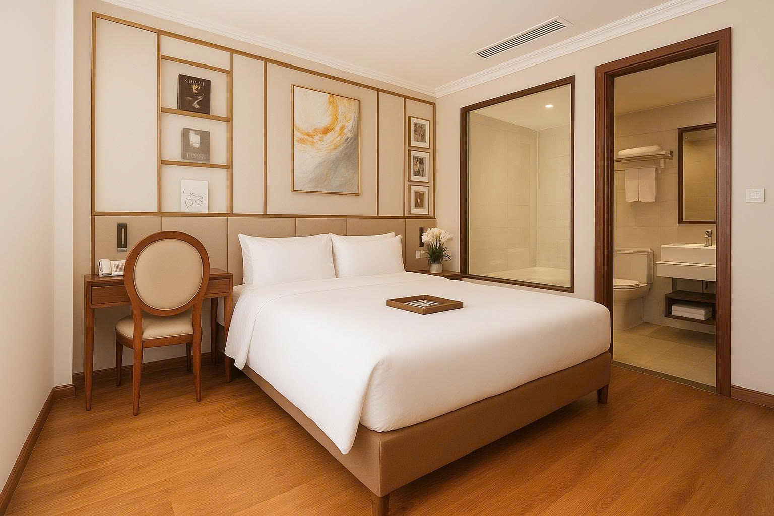 Featuring an internal window, the room provides a serene and quiet atmosphere, perfect for unwinding after a day exploring Hanoi’s rich cultural heritage.