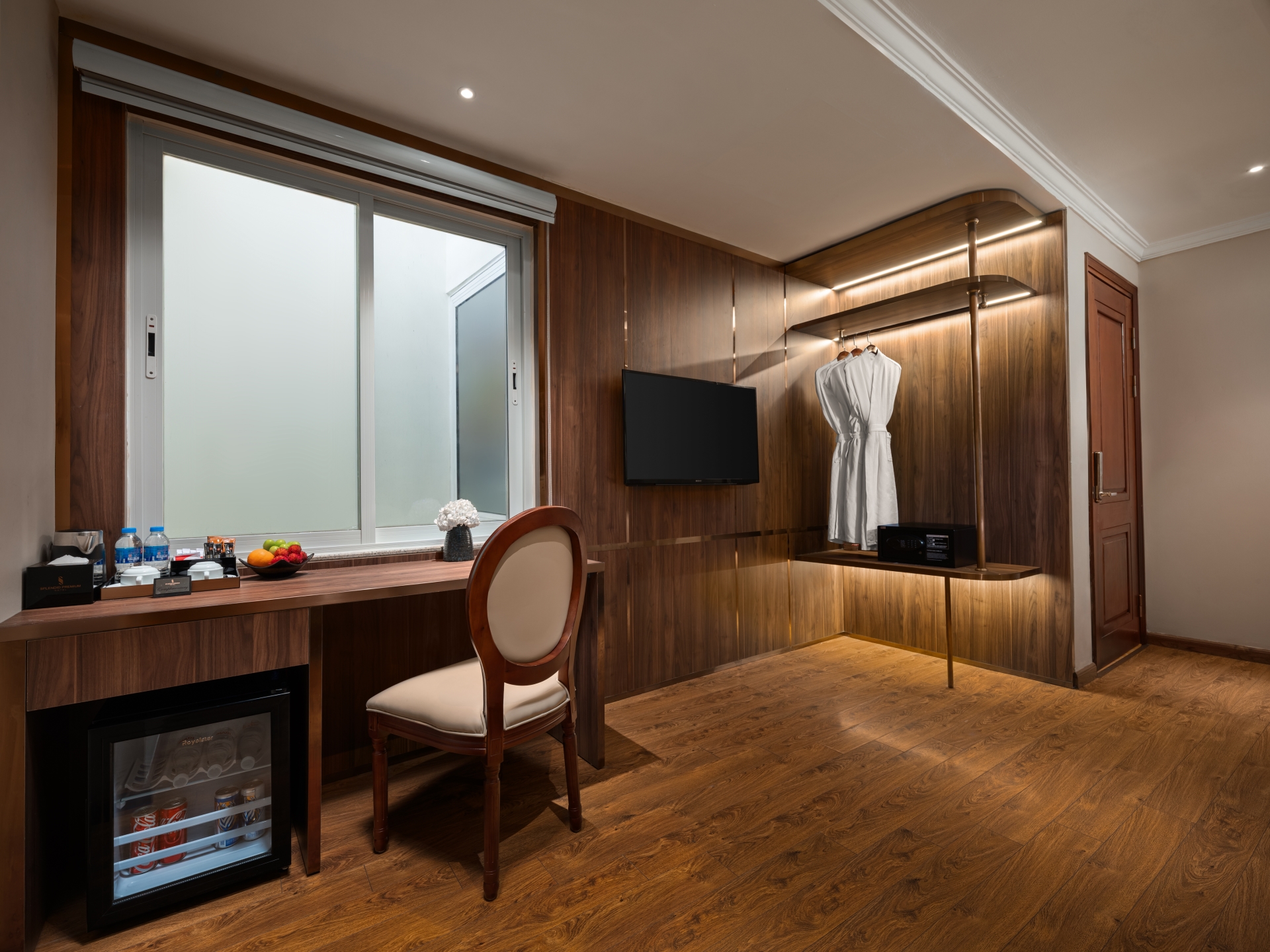 Every detail in the room exudes 4-star sophistication, from the modern, luxurious furnishings to the high-end amenities that blend seamlessly to create a flawless lodging experience. The room is intelligently designed to maximize natural light from the skylight, bathing the space in gentle illumination that fosters a soothing and relaxed ambiance for guests. Here, you will effortlessly immerse yourself in the unique atmosphere of Hanoi, feeling every breath of this ancient and vibrant city.